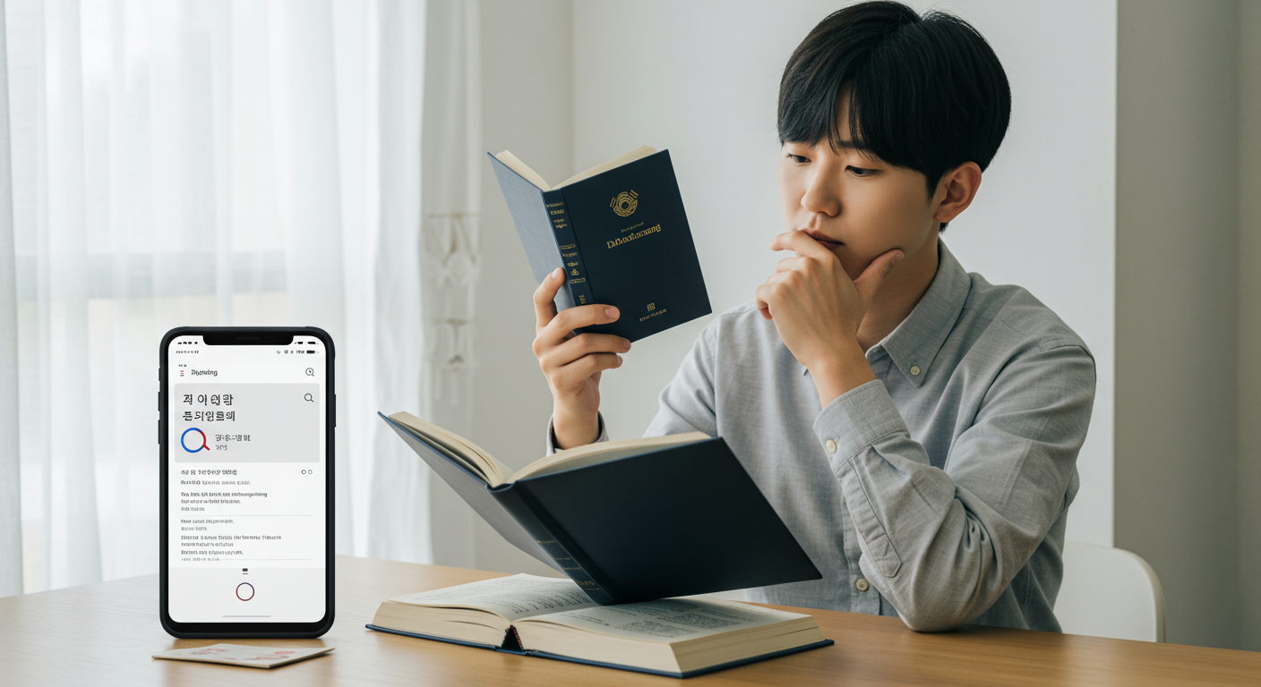 스마트폰으로 '닭볶음탕'을 검색하며 국어사전을 보는 현대 한국인