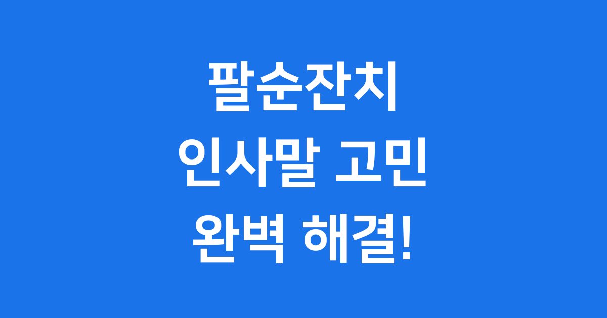 오늘은 팔순잔치 인사말부터 잔치 준비에 필요한 다양한 정보들을 함께 알아보았어요. 이 글이 여러분의 소중한 팔순잔치를 준비하는 데 작은 도움이 되었으면 좋겠어요. 어르신께 따뜻한 사랑과 존경을 전하며 오래오래 기억될 행복한 시간을 만들어 가시길 바랍니다! 😊 더 궁금한 점이 있다면 언제든지 댓글로 물어봐주세요~