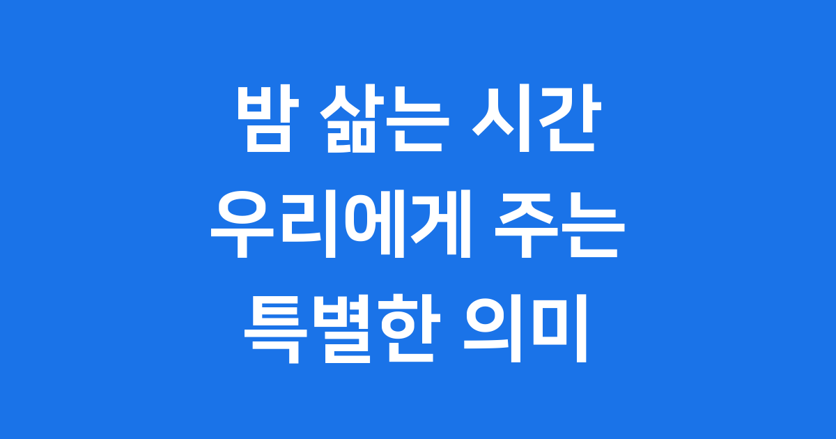 이 글에서는 밤 삶는 시간이 무엇인지부터 옛날 사람들은 어떻게 밤을 보냈는지, 그리고 우리 몸과 마음에 어떤 영향을 주는지까지 재미있게 알려드릴게요. 또, 밤 시간을 더 알차고 행복하게 보내는 똑똑한 방법들도 함께 이야기해 볼 거예요. 자, 그럼 밤의 세계로 함께 떠나볼까요?