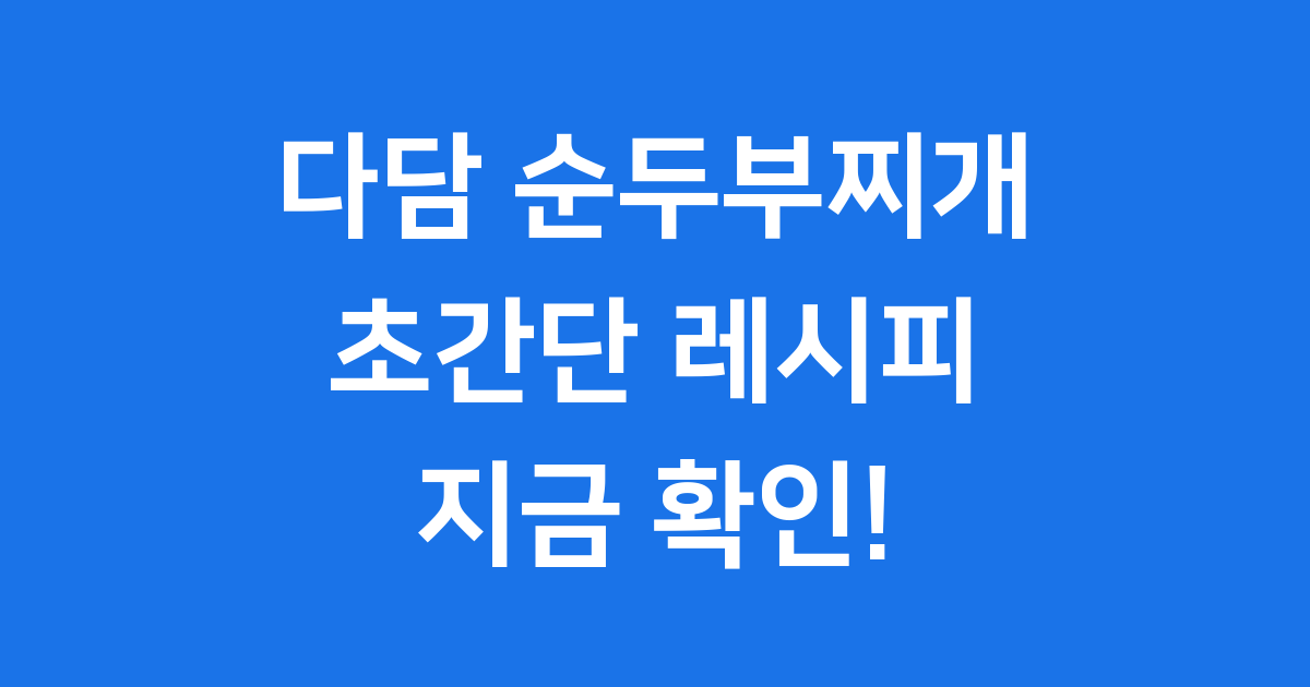 안녕하세요! 혹시 오늘 저녁 메뉴 고민하고 계신가요? 쌀쌀한 날씨에 따뜻하고 얼큰한 국물이 생각날 때, 집에서 뚝딱 만들 수 있는 메뉴가 있다면 정말 좋겠죠? 😊 오늘은 제가 정말 좋아하는 다담 순두부찌개 레시피를 소개해 드릴게요.