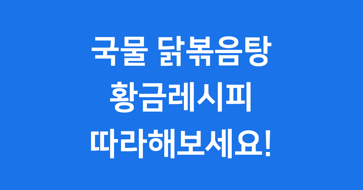 특히 칼칼하면서도 달콤한 국물이 자꾸 생각나는 국물 닭볶음탕은 제대로 된 레시피가 정말 중요해요. 오늘 제가 알려드릴 황금레시피만 있으면, 집에서도 전문점 못지않은 맛있는 닭볶음탕을 만들 수 있답니다!