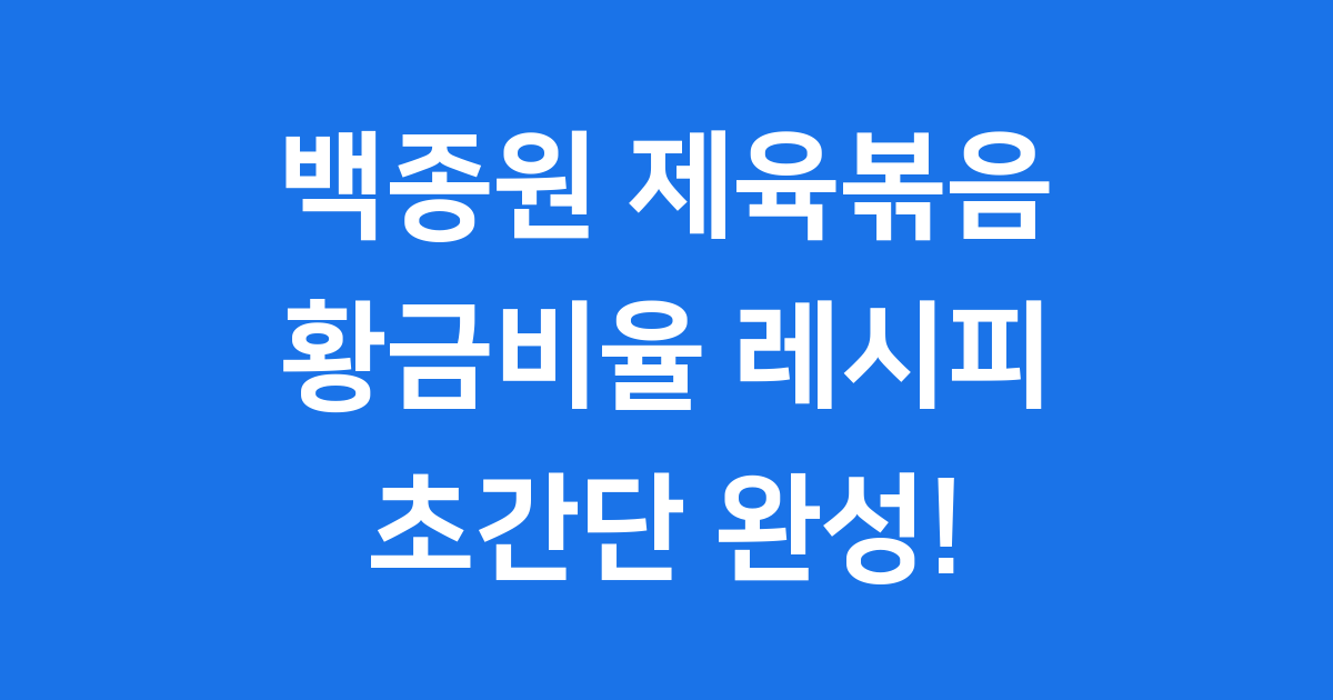 백종원 제육볶음 레시피 초간단 황금비율 만드는법