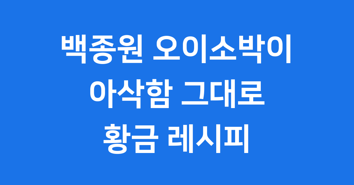 백종원 오이소박이 레시피 아삭하게 만드는법